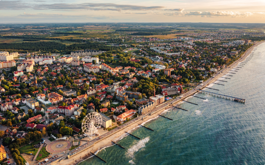 Променад Зеленоградска — идеальное место для отдыха и прогулок. Он находится на набережной города и представляет собой длинный пешеходный бульвар со множеством кафе, лавочек и колесом обозрения «Глаз Балтики». В центре променада располагается пирс. Он выходит в море на 380 м, открывая роскошный вид