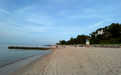 Пляж начинается на городской набережной и тянется до пос. Малиновка. Чистый песок, пляжная инфраструктура, наличие кафе и кофеен делают отдых здесь комфортным. Ближе к Малиновке на пляже располагается популярное туристическое место — гастро-бар «Гнездо»
